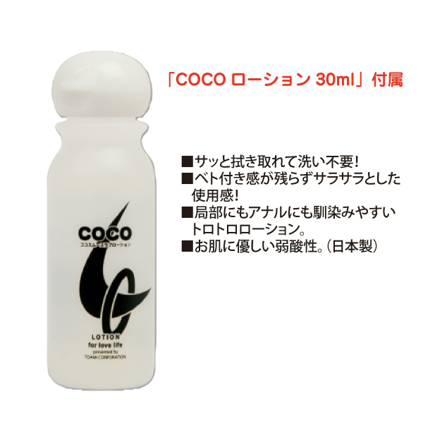 容量250mlのシリコンタンクで、いっぱい洗えて大満足!アナルにも馴染みやすい、洗い不要のCOCOローション(30ml)付き。