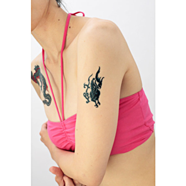 直接肌に描くことの多いボディーアートも、これなら簡単、転写するだけ!まずは貼る部分の皮脂を洗浄し、タトゥーシールの模様の縁を少し残して切り取り、肌に当てて水で湿らせたら30秒間待ちます。