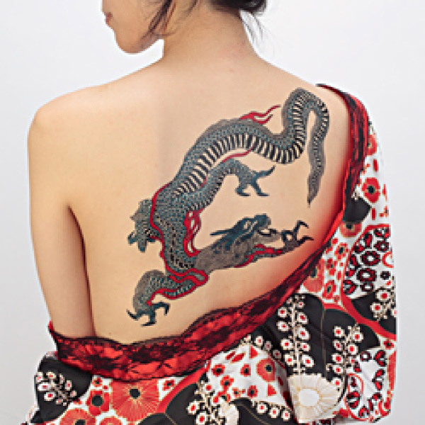 インパクトのあるオシャレを楽しむならこれ!本物の彫師によって細部まで美しくデザインされた、大型タトゥーシール「臥龍」。