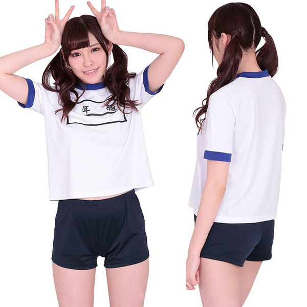 リアルなゼッケン付き!紺×白Tシャツのスタンダードな体操服コスプレセット。青で縁取った半袖トップスと紺色の短パンスタイル!胸元にはゼッケンも付いているので本物っぽく楽しめる体操服コスチュームです。※セット内容以外は付属しておりません。