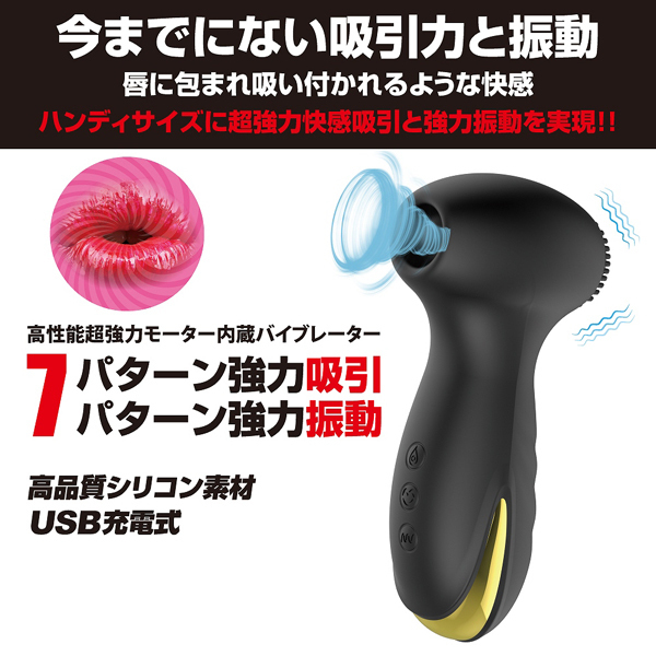 7種の吸引力と7種の振動パターンでクリトリスを吸い上げパワフル振動!唇に包まれ吸われるような快感が貴女を絶頂へと導きます♪吸引口の後ろ側にはモーターを内臓、表面の細かな突起で乳首や好きな箇所をピンポイントに刺激して楽しむのも有り!また、使用後の衛生面が心配という方も安心な生活防水付きで、吸引口から水を入れて洗浄することも可能。