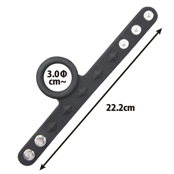 幅広なベルトが付いていることで、睾丸部分をベルトで締め付け、リングで竿の根本を締め付けるというシリコン製のコックリング。