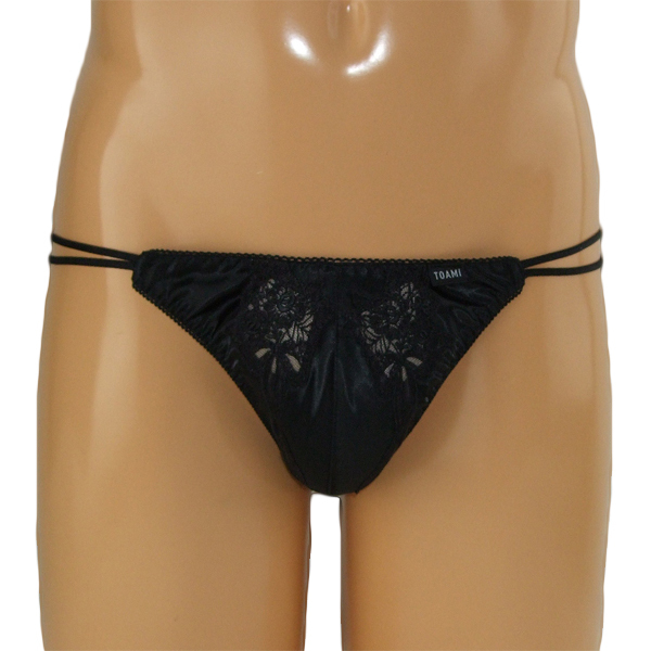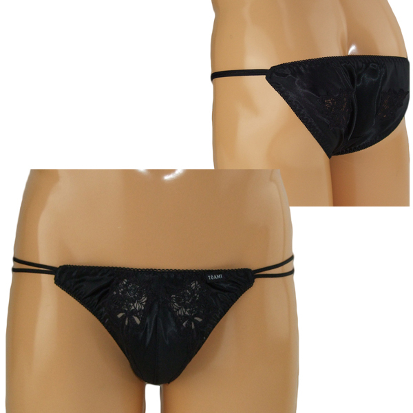 女装下着としても最適!高級感のある上品な光沢と花柄のレース刺繍が美しいメンズ用フルバック(黒)。レースの隙間から見える素肌にドキッとする一枚♪セクシーに魅せたい夜にぜひどうぞ!