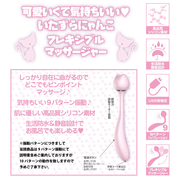 自由に曲がるフレキシブルボディで欲しい所をピンポイントに刺激♪猫型ヘッドの可愛いUSB充電式ローター(ピンク)。