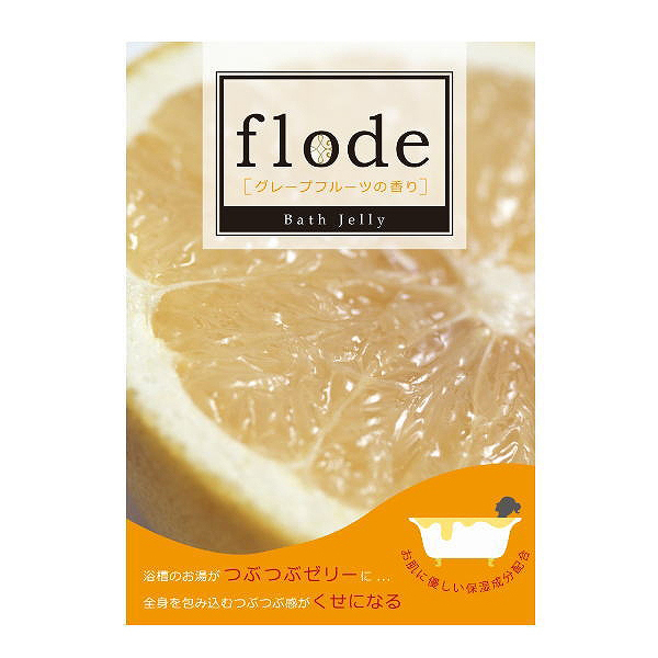 浴槽のお湯がつぶつぶゼリーになる、化粧品認可を取得しているフローデバスゼリー。その日の気分やお好みで香りをお選び頂けます。成分には保湿成分を配合、お風呂上がりの肌触りがしっとり、スベスベになります。グレープフルーツの香り:爽やかで新鮮な香り。
