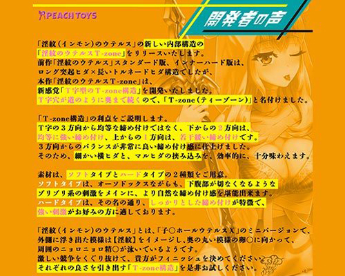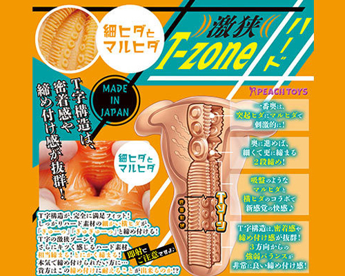 壁一面にびっしりと配置されたヒダを亀頭や裏スジで感じながら、T-zone構造の極狭道の締め付けを2段構えで体感!小さめながらも快感たっぷりに仕上がっています。