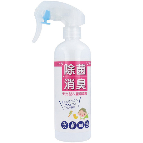 哺乳瓶やおむつ交換などを手軽に除菌&消臭!子ども用品にも安心なソフトタイプの除菌スプレー300ml。ウイルスや細菌の除去&除菌ほか、嫌な臭いもこれ一本♪気になる場所へシュッと一吹きするだけ簡単衛生管理!ご家庭や医療、教育、介護現場など毎日の予防に◎安定型次亜塩素酸ナトリウムを純水で希釈した濃度調整済の除菌消臭スプレー。