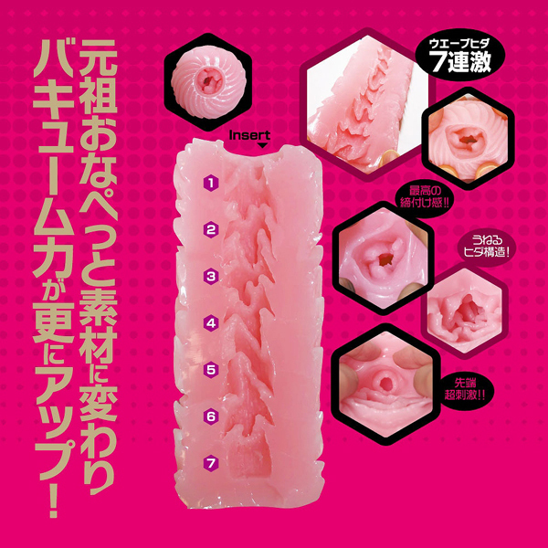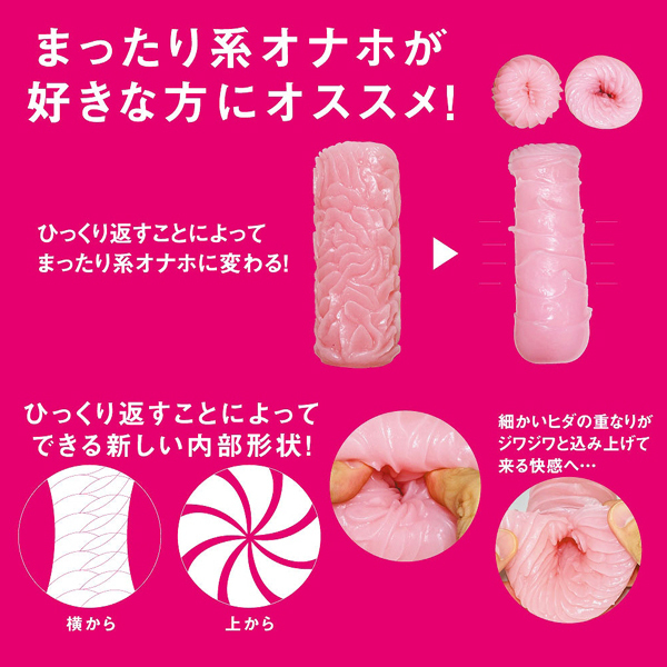 珍しい外観とヒダギミックが魅力の「NaNa(ナナ)」シリーズに、新作の非貫通オナホが登場!もっちりと柔らかな人気素材、元祖おなぺっとを採用したバキューム力抜群の逸品♪7連続するウェーブヒダが絡み締め付け刺激する!まったり感を味わえるリバーシブル構造で、ひっくり返せば裏と表で2度楽しめます。