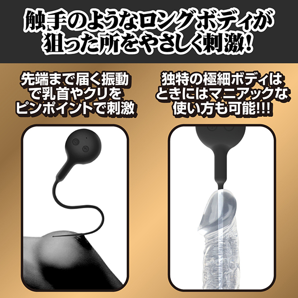 尿道プレイにも大活躍!クリにも乳首にも楽しめる触手のようなローター「ブラックテンタクル」です。