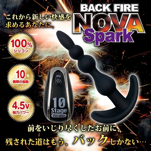 人気のバックファイアシリーズから「バックファイアーNOVA SPARK」が登場しました♪スパークは座薬の位の大きさの1センチの先端から始まり、2連続の15mm&19mmの玉が続き、最後は内部にローターを搭載した21mmの玉が待ち構えるという設計!全部で4箇所の隆起が体験でき、1個の玉を通過するたびに、ゾクゾク感と振動が強くなっていき最後の玉を飲み込んだ時にはまさに脳内でスパーク現象が引き起こされることでしょう!カラーバリエーションはブラックとブルー、ピンクの3色展開でこちらはブラックとなります。