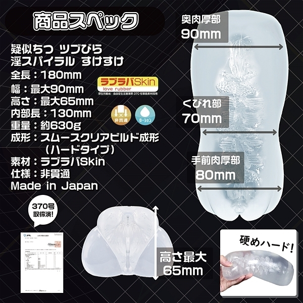 「すけすけ」は固めの硬度で設定されているので強めの刺激を求めている方に最適!厚労省、食品衛生基準第370号準拠素材のラブラバSkinを採用しているので安心してご使用して頂けます。