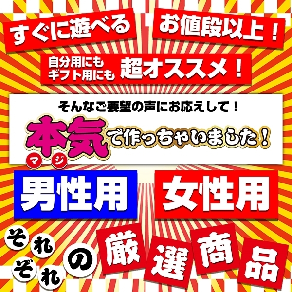 トアミが本気(マジ)で作った福袋!より充実した!よりコスパのいい!買って嬉しい!もらって嬉しいを考えたから、今回は男性用を用意しました!中身は合計して定価¥10000以上!絶対に損させない中身を考え抜きました。イベントの景品やプレゼントにも超オススメ!お得にドキドキ・ワクワク・気持ちいい♪を味わいたい人にオススメの逸品♪