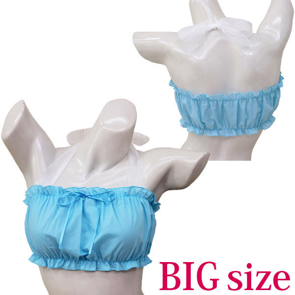 ●女装子さんも着用できるBIGサイズ●ずり落ち防止・白いシフォンリボンを結んでホルターブラにチェンジ●縫いこんだストレッチゴムのおかげでボディにフィット●胸元にキュートな細いリボン飾りをあしらいました。