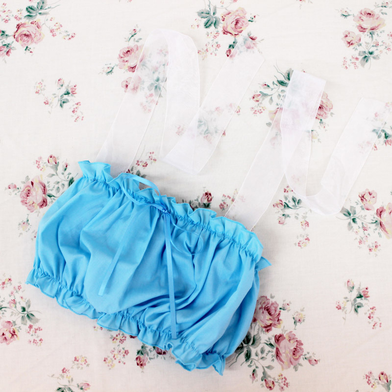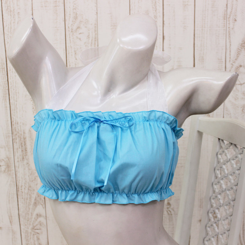 見せブラOK!たっぷりギャザーが超可愛い、水色のチューブブラジャー単品。