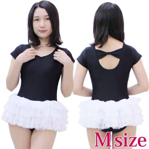 ●シックな黒×ホワイトスカート●二の腕カバーの半袖タイプ●一部にあて布付きで安心●リボンデザインで後ろ姿も可愛く●ふんわりチュチュ付き。