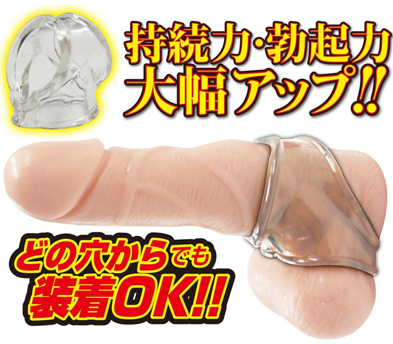 根元をダブルで締め付けて眠った男の底力をUP!三方向どこからでも装着できる透明コックリング。