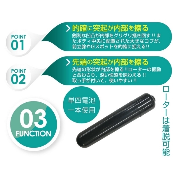●メリハリのある高弾力なボディ●扱いやすいグリップリング付き●先端が前立腺をダイレクト刺激●内部をグリグリ圧迫する大コブ●腸全体に響き渡るローター振動●三段階の振動強弱切り替え搭載●内蔵ローターは取り外し可能。