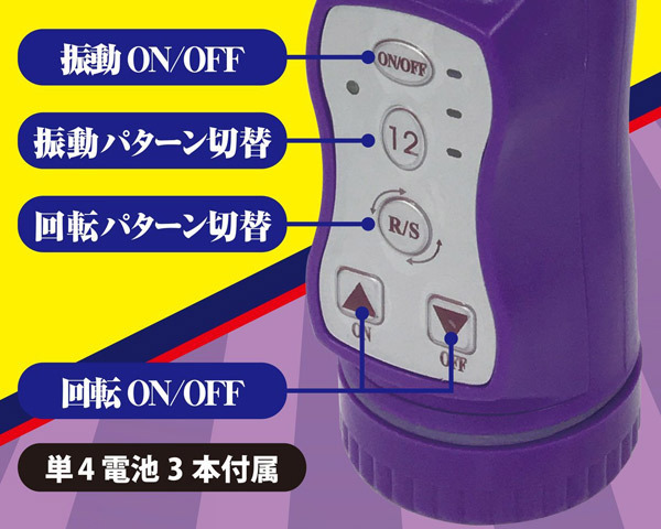 ワイのバットでイカせたるっ!パール&回転機能を搭載した二点責めバイブレーター。