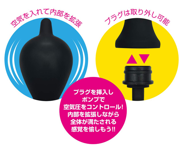 プラグを挿入しポンプで空気圧をコントロール!プラグは取り外せるので、丸洗いも可能。