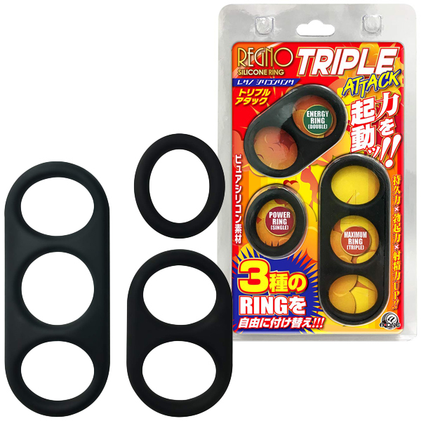 持久力×勃起力×射精力UP!3種類のリングを自由に付け替えてSEXや自分磨きに使える「レグノシリコンリング」(トリプルアタック)。