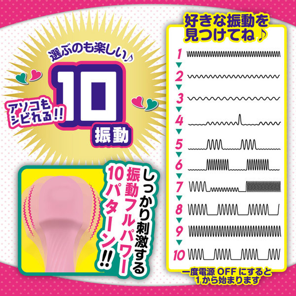 ピンク色の柔らかなシリコンで覆い生活防水加工を施した可愛いデザイン!当てても痛くなりにくく、濡れてくれば挿入も可能◎10種類の振動を搭載しながら操作はシンプルで初心者さんでも簡単。