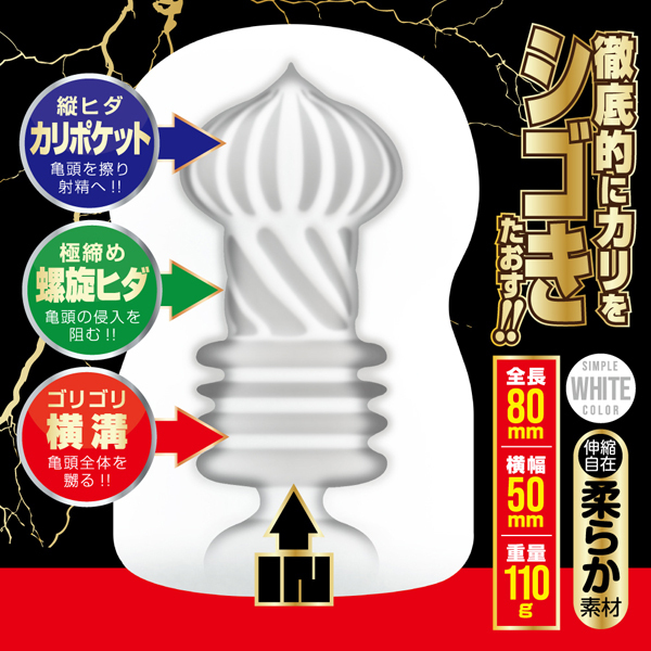 亀頭への刺激を重点的に考え開発されたカリベーション!オナニーに集中がしやすいホワイトカラーのボディと、一切の無駄を省いたシンプルな造形が特徴。
