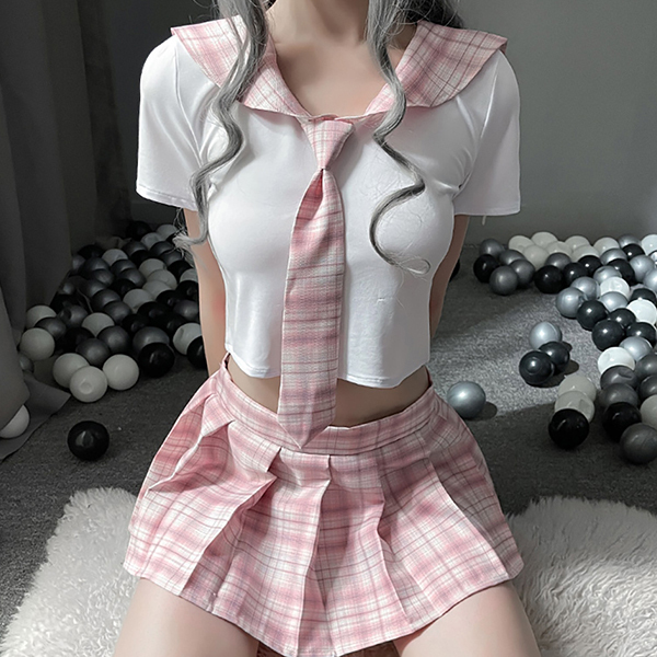 ストレッチ素材でボディにしっかりフィット!短めの丈が可愛らしいランジェリー感覚で制服コスが楽しめるセットです。