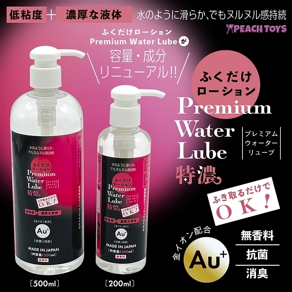 『水のように滑らか、でもヌルヌル感持続!ふき取るだけでOK!』「ふくだけローションPremium Water Lube (180ml)」が、ラベルデザインと容量・成分をリニューアルして再登場です!白いポンプの「ふくだけPWL 特濃」は、【低粘度+濃厚な液体】入口の大きなオナホールでも垂れにくい。