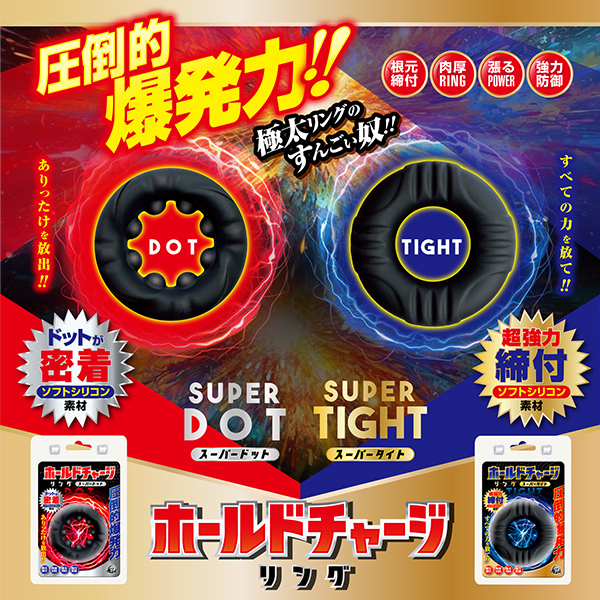 リングを装着しエネルギーチャージ。圧倒的爆発力で、ありったけを放出!攻守ともに優れたソフトシリコンリング。タマやサオ、その両方をガッチリホールドし、最後の一撃に込めるべし!<商品特徴>ドット部分が密着しながら気持ちイイポイントを刺激する!