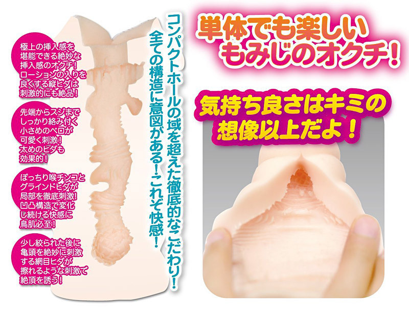 もみじ本体(別売り)のおクチに装着すれば、至極の生フェラを味わえるフェラチオドールの出来上がり!小さめの舌や喉チンコに加え、縦ヒダ・網目ヒダ・グラインドヒダと、多彩な仕掛けでアソコを絞り上げます。