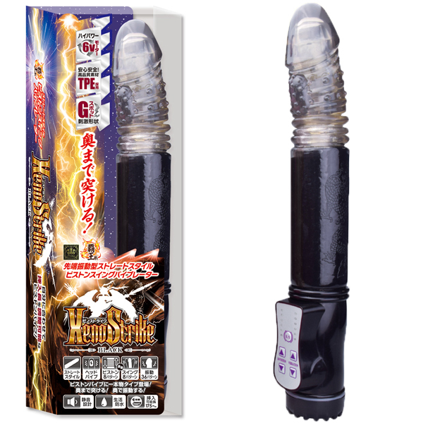 約17.5cmのロングボディで最奥まで突き上げる!Gスポ刺激にこだわった電池式ストレートバイブ(黒)。6Vの強烈ピストンで激しく突き上げ先端部分で振動刺激!挿入しやすいストレート形状にスイング&ピストン、36種類の振動パターンを搭載した高性能バイブ♪生活防水&静音設計