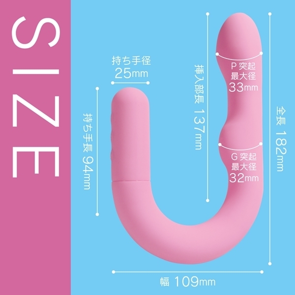 パッケージ:19.3×13.0×4.0cm 全長18.2cm 挿入部長13.7cm G突起最大径3.2cm P突起最大径3.3cm 持ち手径2.5cm 持ち手長9.4cm 幅10.9cm 内容量:1182g 内容量:1182g