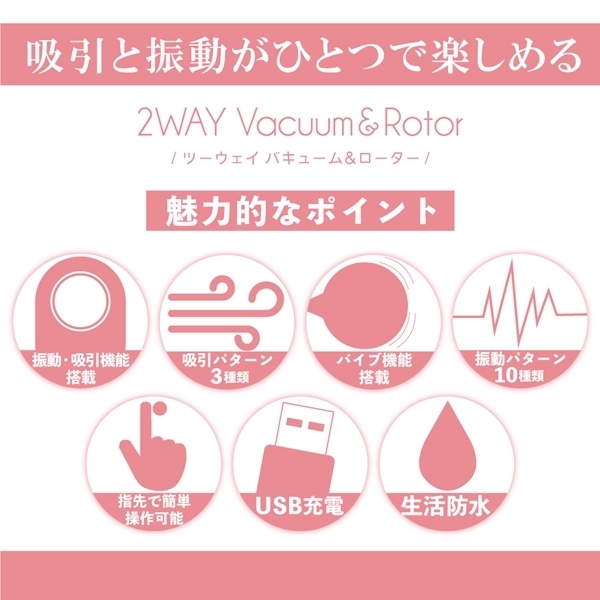 2WAY Vacuum&Rotorは唇の様な吸引とリズミカルな振動、2つの機能を併せ持ったローターです。