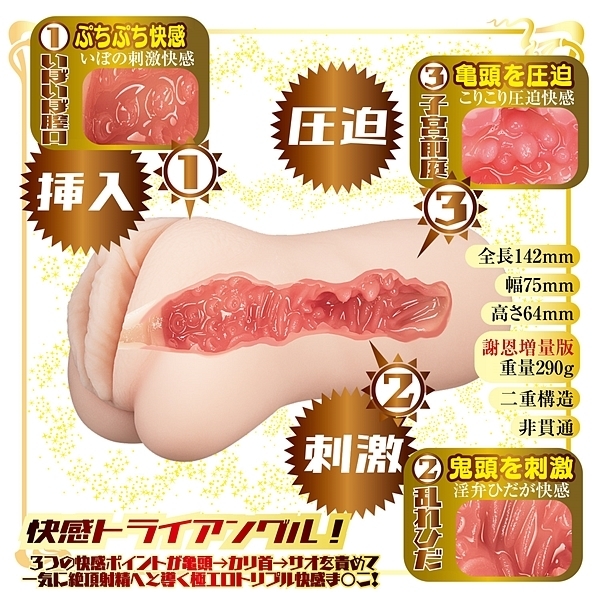 麗のアソコは名器と言われて気持ち良いんだよ?迫力のチ○コに効くシコいボディの麗ちゃんのひだひだ名器!螺旋状のいぼが亀頭を刺激して薔薇の花弁状の淫ひだが連なる!玉状のいぼが隆起して亀頭を圧迫してフィン状の乱れひだが刺激する!麗ちゃんのひだぷちぐちゃま○こをぷりぷり素材で再現したらペニスを乱れひだが刺激して一気に射精しちゃいそう!?●二重構造●日本製