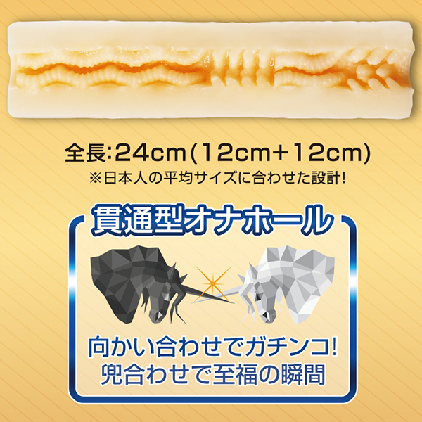 超ロングな筒状のオナホとなっており両方から挿入が可能。