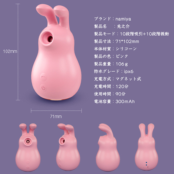 そして、手にフィットする握りやすい形状と充電式リチウム電池を採用した軽量構造で疲れを感じることなくプレイに集中できる魅惑のアイテムが登場!【静音仕様+コンパクト】生活防水仕様となっているので、お風呂やプールなどの水場で楽しんだり、使った後は水洗いしてお手入れすることができます!また次も安心して楽しむことができるのも魅力です!●生活防水(IPX4)●10段階吸引+10段階振動●医療用シリコン素材、ABS●USBマグネット充電●充電時間:120分、稼働時間:90分●電池容量:300mah