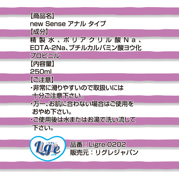 紫色が目印!お尻の感覚を研ぎ澄ます肌に優しいアナル用ローション250ml。使って納得の高品質な日本製!しっかり潤わせて快適なプレイをサポートします。あのセンスローションシリーズが生まれ変わり、更に使い易く高性能になって帰ってきた!用途に合わせ全7種類を展開♪各場面に合わせてお選びください。