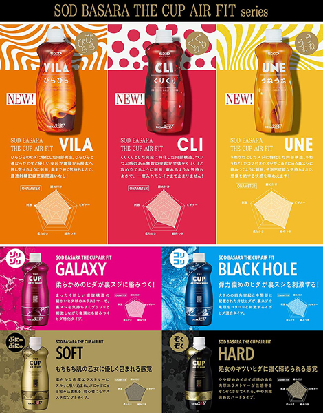 うねるコブ付きヒダが裏スジに絡みつき刺激する!予測不能な快感がたまらないスジ特化型構造。無段階に空気調整ができる新機構エアアジャストバルブを搭載した「SOD BASARA」シリーズ!奥行12.5cmと奥突きできる独自設計で、素材には包み込まれるように気持ちいい最高級ウレタン採用。挿入部周辺のボリューミークッションで下腹部まで心地良い◎重量156g
