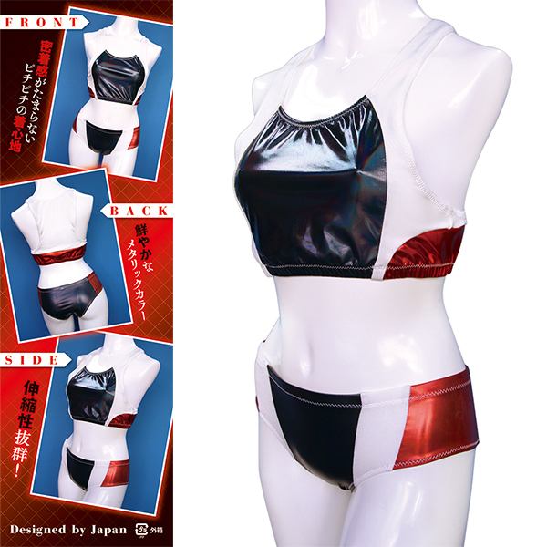 コラボ商品ならではの限定感と他にはない個性的で魅力的なデザイン♪生地は伸縮性があり、しっかりとフィットする密着感がたまらない!ピチピチの着心地に鮮やかな光沢感♪女性用・おとこの娘用の2サイズ展開でこちらは女性用Mサイズ。