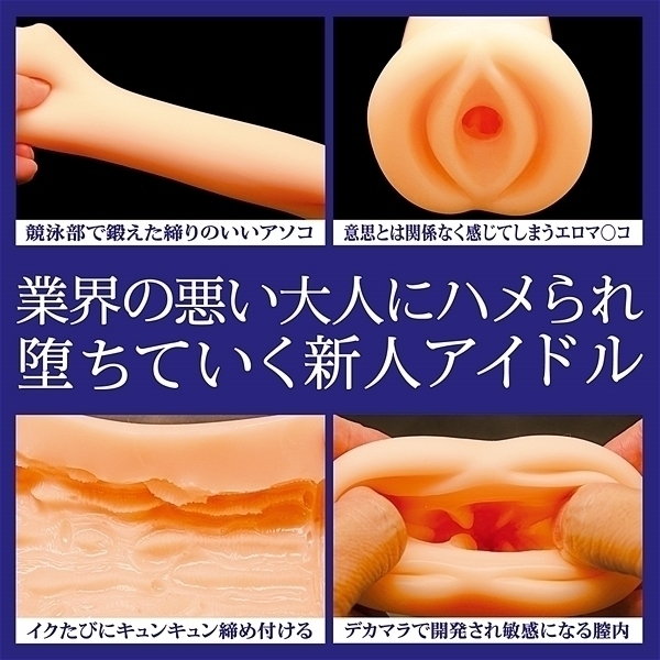 公式コラボ商品。堕ちた新人アイドルのアソコを再現!業界の悪い大人にハメられ堕ちていく新人アイドル、芸能界の闇に堕ちていく穢れ星たち、意思とは関係なく感じてしまうエロマ〇コ、競泳部で鍛えた締りのいいアソコ、デカマラで開発され敏感になる膣内、イクたびにキュンキュン締め付ける!