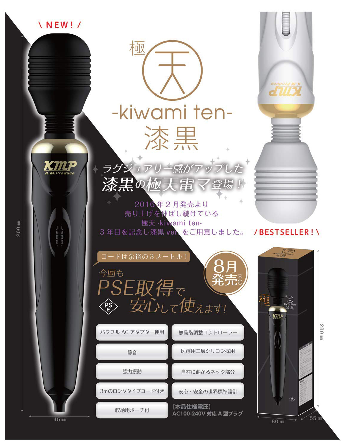 医療用の二層シリコンを採用していて、自由に曲がるネック部分と防水機能が魅力的!ヘッド径は45mmと他社製のアタッチメントにも対応していて、静音仕様で保管用のポーチも付属と至れり尽くせりのお得なデンマ♪漆黒のスタイリッシュなボディに3mのコード長と使い勝手も抜群。