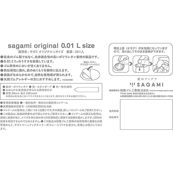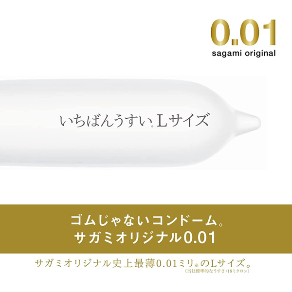 これまでよりもさらに薄く、柔らかく改良されたコンドーム、サガミオリジナル0.01Lサイズ。