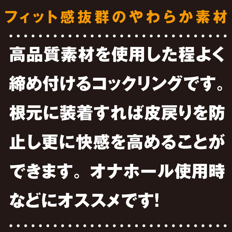 大中小の各サイズが勢揃い!高品質シリコンを使用した、シンプルデザインのコックリング3個セット。どなたでもフィットする伸縮性の高い柔らか素材を採用!刺激を求めるパートナーとのスパイスとしてはもちろん、ホールオオナニーにも最適!しっかり締めつけながら、ロングプレイをサポートしてくれるコックリングセットです。