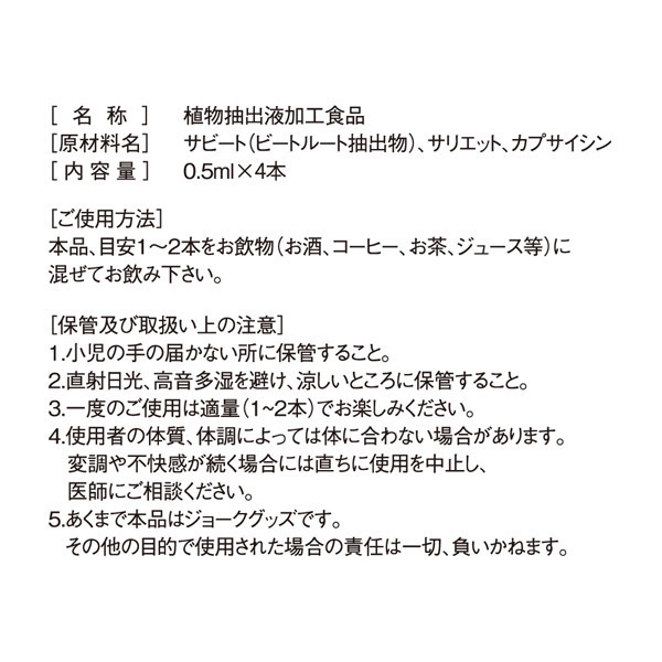 ビートルート抽出物・サリエット・カプサイシンを配合した女性用コスメ「ぬれぬれ嬢S グショグショ」。内容量0.5ml×4本入り