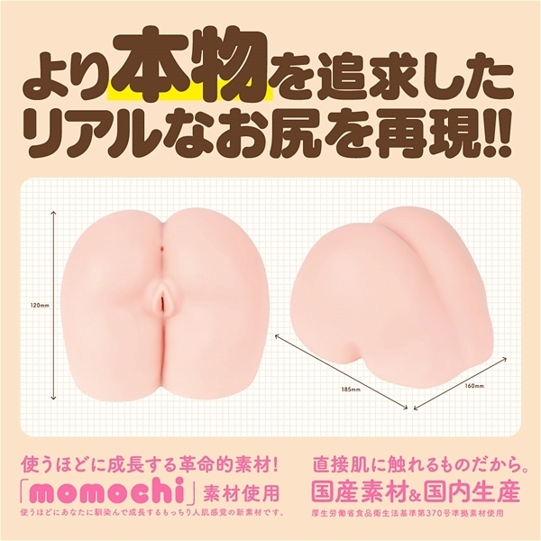 より本物を追求したリアルなお尻を、心惹かれるHON−MONO造形で再現し、ノーハンドでも楽しめる臨場感あるホールに!!平均サイズ、GスポットとAスポット、リアルに当たるポルチオ角度、波打つ肉壁、素材もこだわった「ふんわり柔肌、とろける生の感触、生の肉厚」。