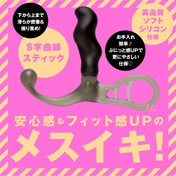 高品質ソフトシリコン仕様で肌ざわり滑らか&ぷにっと感UPで更にやさしい仕様♪お手入れも簡単♪前突きぷにっとヘッドがメスイキゾーンを責めやすい前突き形状&芯がない柔らかヘッドでフィット感UP!S字曲線スティックで下から上まで滑らか密着&擦り責め!スムーズ挿入突起が優しい緩急形状で負担少なくラクラク挿入!オトコしか味わえないメスイキ!